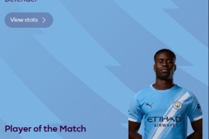 收获曼城生涯联赛首球,官方:格伊当选曼城3-0切尔西队内最佳