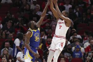 就此,勇士近8场比赛中仅取得1胜7负的战绩,唯一赢的是老对手火箭。