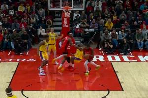 GIF-阿门抢篮板 给了詹姆斯一巴掌 裁判没有表示