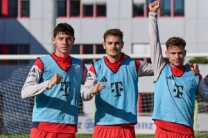 体育资讯3月18日讯 据记者Philipp Kessler报道,拜仁16岁中后卫菲利普·帕维奇(图片中左一)入选欧冠对阵亚特兰大大名单,这也是其首次入选成年队名单。