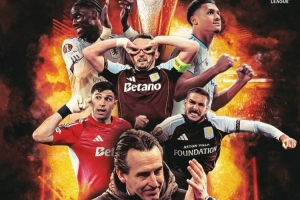 维拉官方更新社媒动态,晒出海报庆祝球队晋级欧联杯8强,埃梅里率领众将出镜,身后则是欧联杯冠军奖杯。