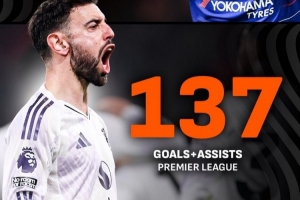 据媒体统计,B费已经在英超参与137粒进球,超越阿扎尔的英超参与进球数量(136球),而且B费还少踢了22场比赛。