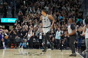 马刺先发为:福克斯、哈珀、尚帕尼、巴恩斯、文班亚马。