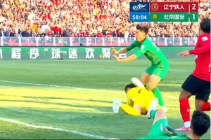 中超联赛第4轮,辽宁铁人楠波湾VS北京国安。比赛第58分钟,北京国安进球。裁判员在球进入球门前鸣哨停止比赛,并判北京国安37号队员在之前的争抢时对对方守门员犯规,进球无效,由辽宁铁人踢直接任意球恢复比赛。VAR未介入。