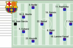 前锋:拉菲尼亚、费兰、亚马尔