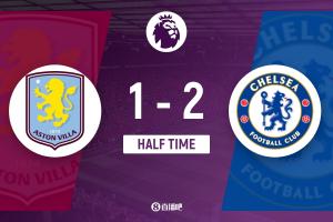 半场-切尔西暂2-1维拉 道格拉斯·路易斯闪击若昂·佩德罗双响