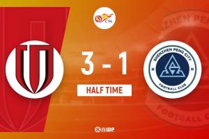 半场-蓉城暂3-1十人新鹏城 姜至鹏肘击染红 韦林顿、胡荷韬破门